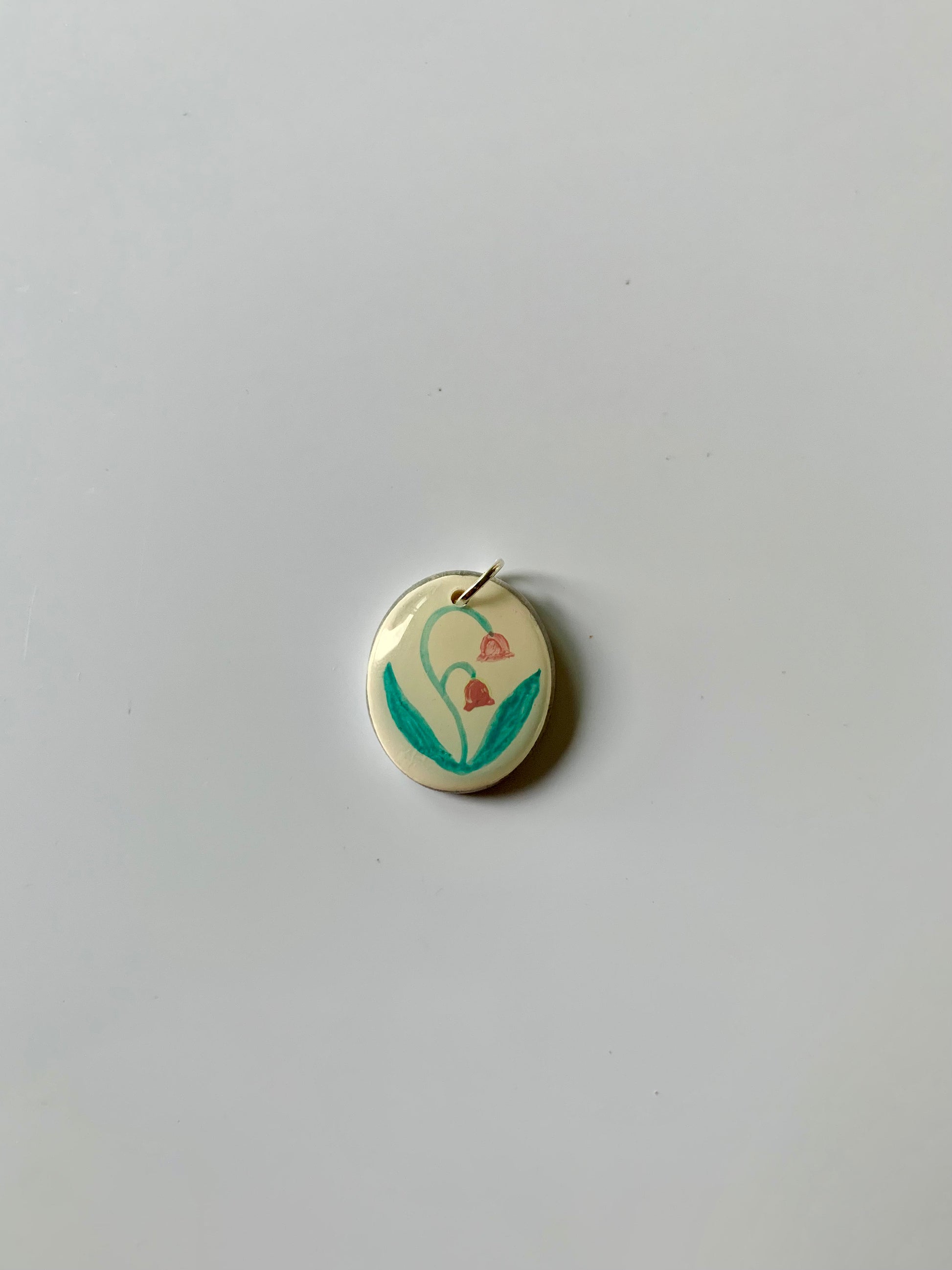 Este colgante está pintado a mano, mide 2cm de largo por 1,5cm de ancho aprox. y pesa 1,18g.