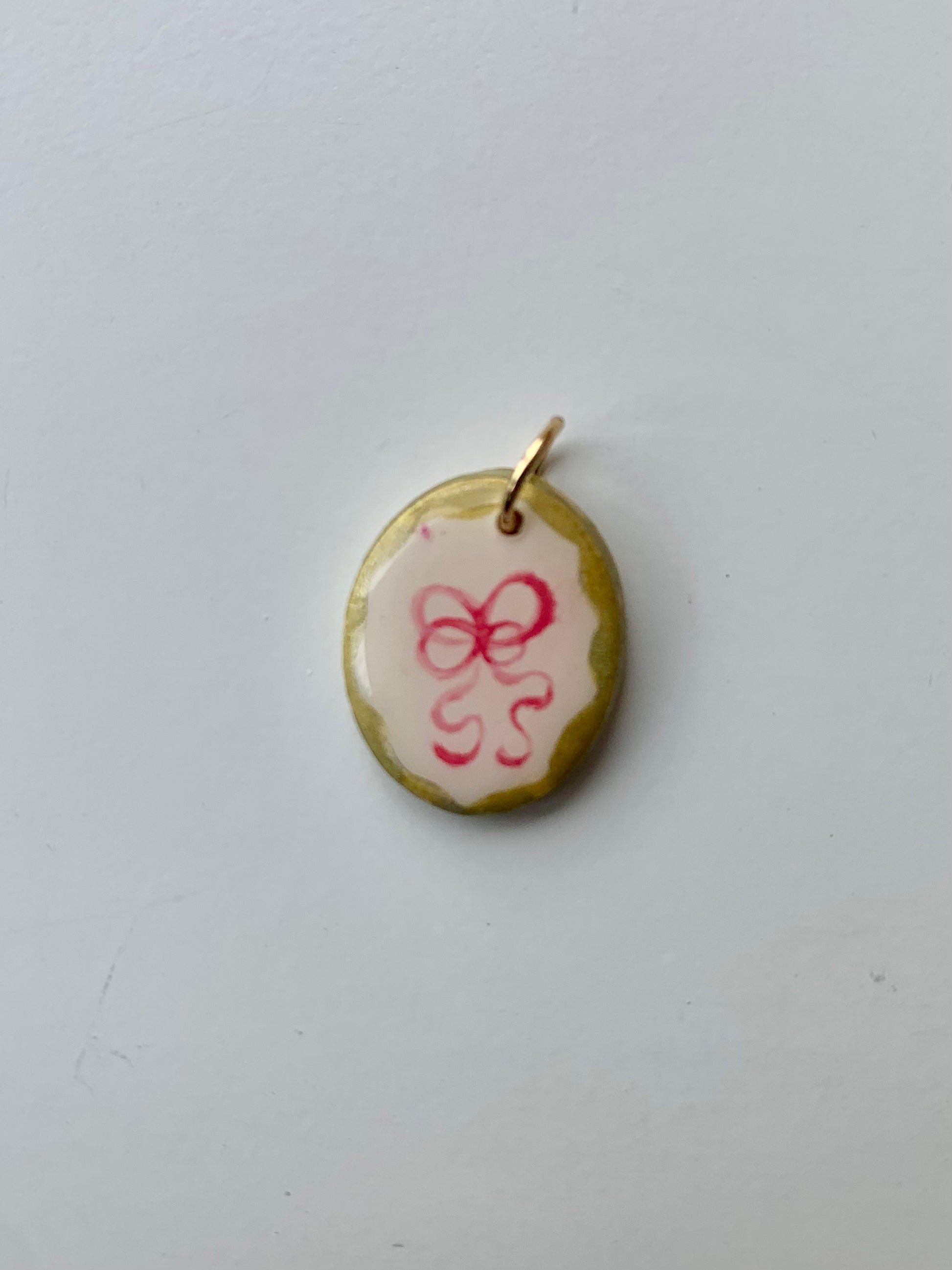 Este colgante está pintado a mano, mide 1,5cm de largo por 1cm de ancho aprox. y pesa 1,18g.