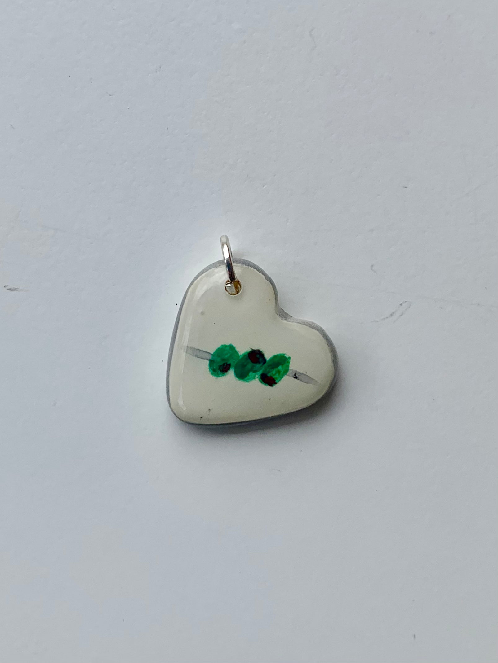 Este colgante está pintado a mano y mide 2cm de largo por 2cm de ancho aprox.