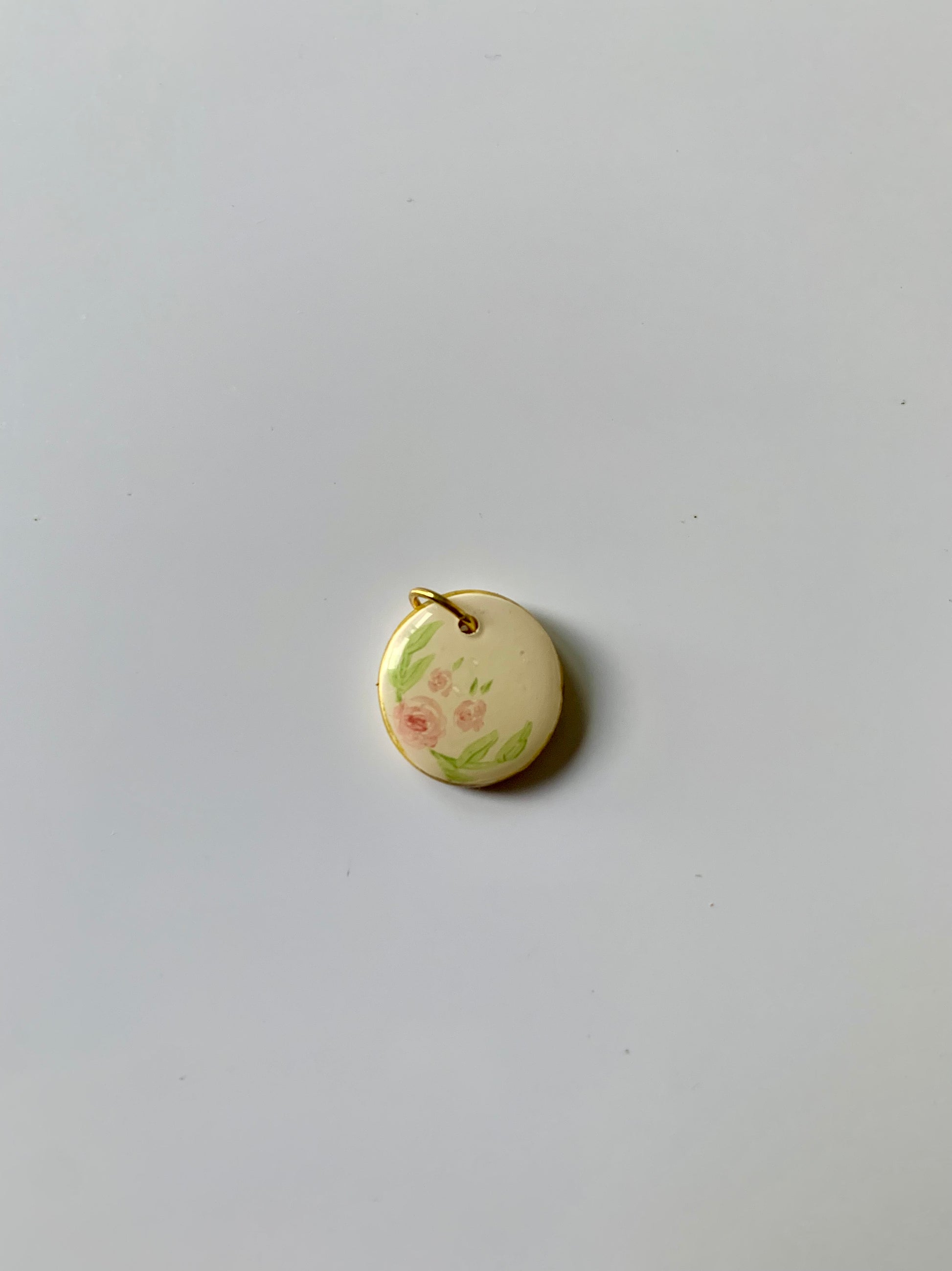 Este colgante está pintado a mano, mide 2cm de largo por 1,5cm de ancho aprox. y pesa 0,75g.